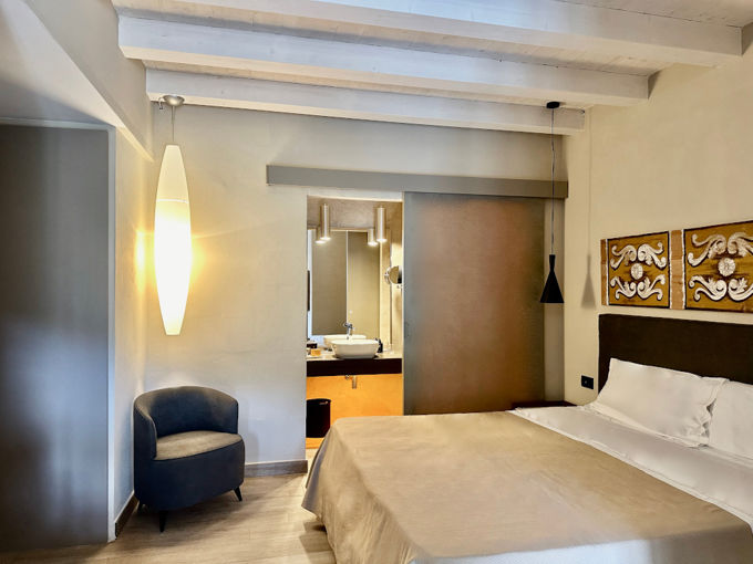 Deluxe is a bright and gracefully furnished room. Ideal for 2 people; some Deluxe have cot for children under 3 years. Provided by an outdoor space in the exterior garden or in the bloomed court.